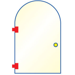 Dobradiça para porta em arco com ponto de giro deslocado a 25mm